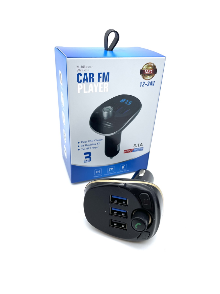 Автомобільний FM модулятор M21 призначений для прослуховування музичних композицій у транспортному засобі. Основа роботи пристрою полягає у перетворенні файлів з USB-накопичувача, карти пам'яті, смартфона або планшета на радіохвилю, на яку слід налаштувати особистий радіоприймач. Звук розповсюджується на невелику відстань. FM-трансмітер - хороша альтернатива, коли немає можливості придбати магнітолу.