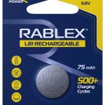 Акумулятор батарейка Rablex LIR2016 — це компактний літієвий акумулятор з номінальною напругою 3.6V та ємністю 75mAh. Він використовується для живлення різноманітних електронних пристроїв, таких як годинники, пульти дистанційного керування, модулі, портативні гаджети, а також інші пристрої, що потребують стабільного джерела живлення з невеликою потужністю.