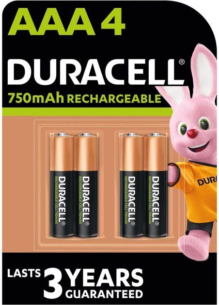 Duracell Акумулятор розміру AAA 750 мАч — № 1 за тривалістю роботи від одного заряду (порівняно з часом роботи аналогічних перезаряджуваних батарейок розміру AAA від одного заряду в одному і том же пристрої),0. Завдяки довговічному іонному ядру Ви отримаєте приголомшливий заряд енергії в кожній батарейці. Вони продаються вже зарядженими, тому Ви можете почати їх використання відразу після придбання. Невикористаний заряд зберігається до 12 місяців.