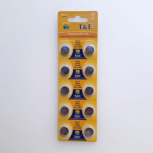 Батарейка T&E AG10 /LR54/LR1130/189/389/SR1130W/GP 89A (ціна за 10шт/блістер)