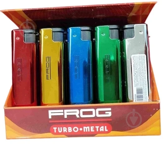 Запальничка FROG TURBO METAL різнокольорова (25шт/уп) Запальнички та газ