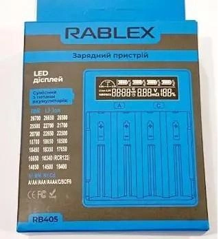 Зарядний пристрій RABLEX RB405 на 4 батарейки з дисплеєм