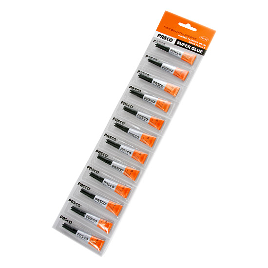 Суперклей "Pasco". 12 шт. на блістері. Призначений для склеювання різних матеріалів - паперу та картону, гуми, металу, пластику, дерева, текстилю та шкіри.