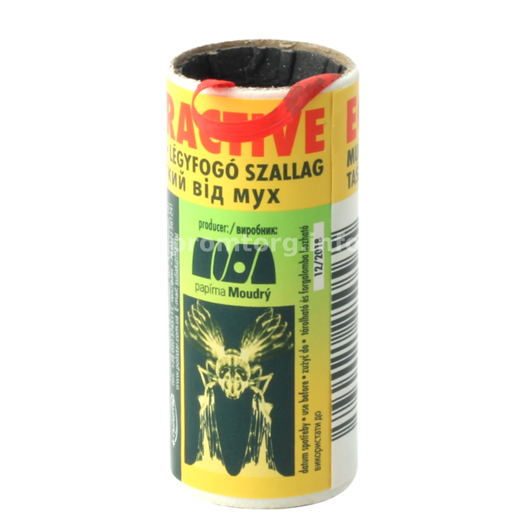 Двостороння клейка паперова стрічка з атрактантом гарантує ефективне вловлювання мух (Musca domestica).