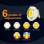 7 режимів роботи: світло 5000K сильне; світло 5000K економне; світло 3000K сильне; світло 3000K економне; червоне світло; аварійне світло (червоний миготливий); датчик руху.