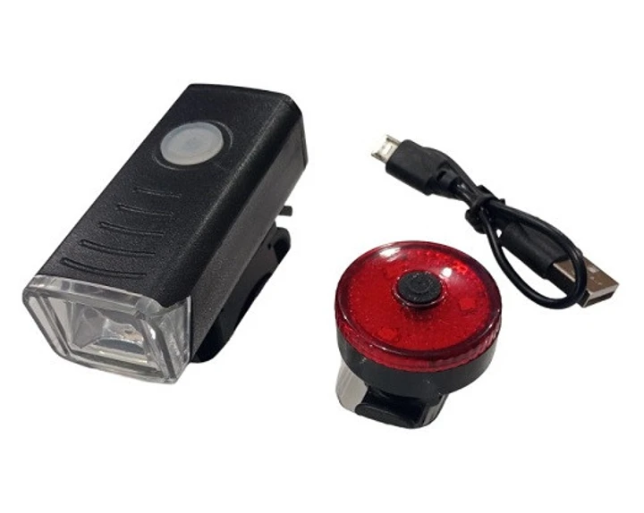 Передня яскрава фара з одним світлодіодом XPG та 3 режимами свічення (100% яскравості, 50%, стробоскоб). Живлення від вбудованого акумулятора, заряджання Micro-USB. Кріплення фари на кермо велосипеда за допомогою гумового кріплення із клямкою для швидкого знімання.