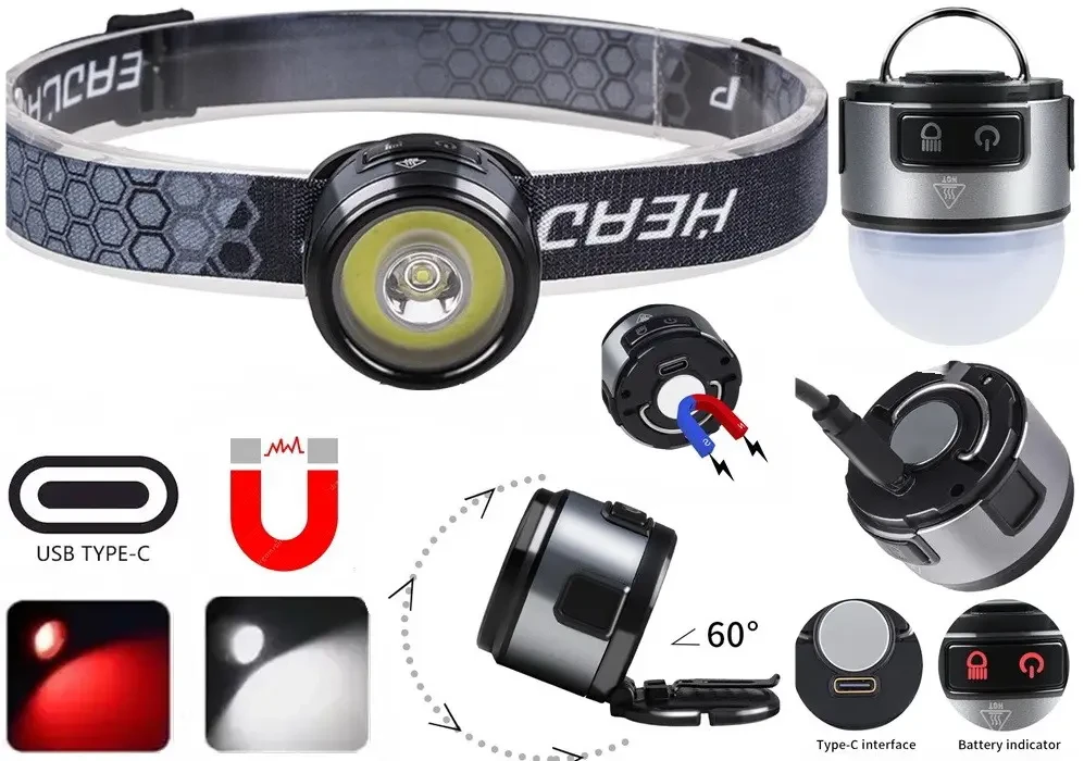 * Варіанти використання: Налобний ліхтар / Причіпний / Кемпінговий