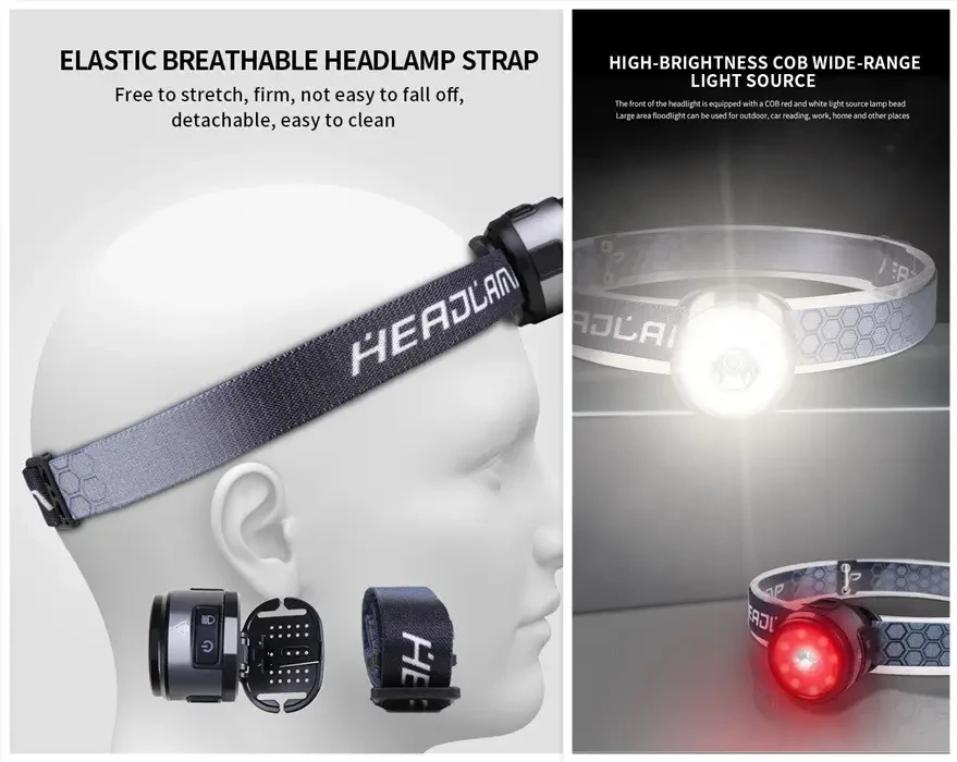 Ліхтар на голову PL-125 type-c (біле + червоне світло)