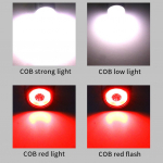 * 4 Режими (COB led): High, Med, Red, Red Flashing