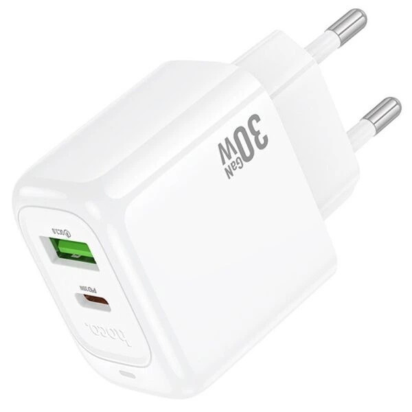 Мережевий зарядний пристрій Hoco CS55A — це потужний та універсальний адаптер, що підтримує сучасні стандарти швидкої зарядки PD (Power Delivery) та QC 3.0. Завдяки вихідній потужності 30 Вт, пристрій здатний швидко заряджати смартфони, планшети та навіть деякі моделі ноутбуків. Адаптер оснащений двома портами: USB-A та USB-C, що дозволяє заряджати два гаджети одночасно. Корпус виконаний з вогнестійкого полікарбонату, а вбудований LED-індикатор роботи допомагає легко знайти пристрій у темряві. Технологія широкого діапазону вхідної напруги (100–240В) робить його ідеальним супутником у подорожах по всьому світу.