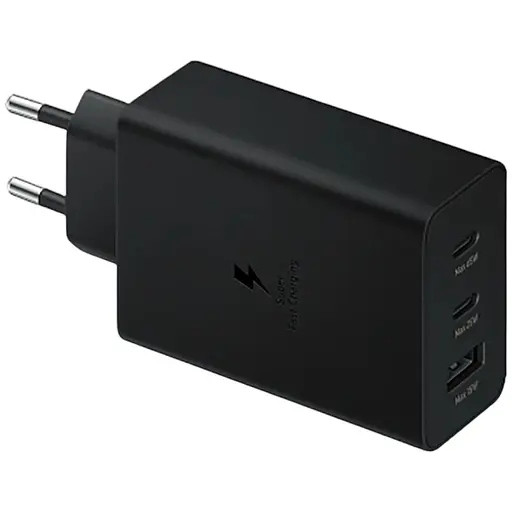 МЗП Samsung Trio — це ідеальне рішення «все в одному» для ваших гаджетів. З потужністю 65 Вт цей адаптер здатний швидко заряджати не тільки смартфони та планшети, а й сучасні ноутбуки. Пристрій оснащений трьома портами: двома сучасними USB-C та одним класичним USB-A, що дозволяє живити до трьох пристроїв одночасно. Перший порт USB-C видає максимальні 65 Вт для потужних девайсів, другий — до 25 Вт, а порт USB-A — до 15 Вт. Адаптер підтримує стандарти швидкої зарядки PD та Super Fast Charging, забезпечуючи ефективну та безпечну передачу енергії.