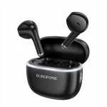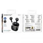 Бездротова стереогарнітура BOROFONE FQ11 — це стильні та практичні навушники-вкладиші (Semi-in-ear Design), що забезпечують якість звуку ("Perfect sound quality") і комфорт при використанні. Гарнітура підтримує технологію TWS (True Wireless Stereo), що дозволяє насолоджуватися музикою без жодних проводів. Завдяки великим 13-міліметровим динамікам ("13mm large dynamic coil") і технології HiFi, навушники FQ11 відтворюють насичений та чистий звук. Час роботи на одному заряді становить близько 4 годин, а зарядний кейс дозволяє подовжити загальний час використання. Навушники оснащені зручним сенсорним керуванням ("Support touch control") та функцією автоматичного сполучення.