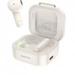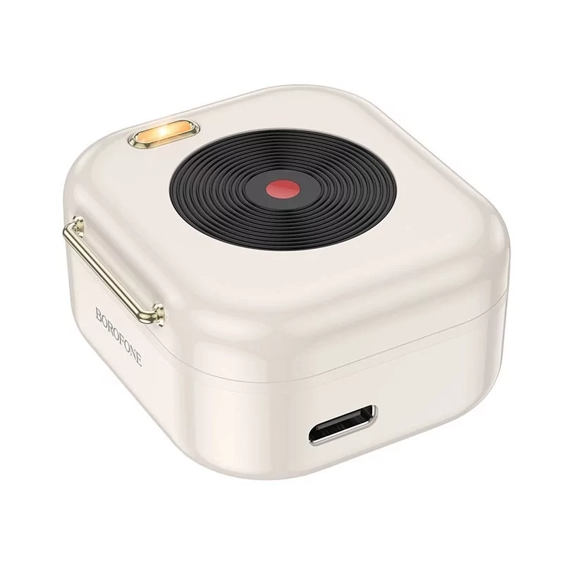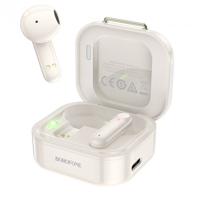 Блютуз стереогарнітура Borofone BW16 — легкі навушники-вкладки, створені з використанням сучасних технологій і матеріалів найвищої якості. Модель реалізована в стильному ретро дизайні, з оригінальними елементами та привабливою на дотик глянсовою поверхнею. Аксесуар виділяється чудовим відтворенням низьких і високих частот, що дасть змогу насолодитися всіма нюансами музичних композицій. Корпусні деталі пристрою надійно зібрані, виготовлені з міцного, стійкого до ударів пластику, який вбереже їх від пошкодження під час ударів, спричинених падіннями. Модель підтримує роботу голосового помічника Siri та перемикання між провідним і відомовим навушником, обладнана мікрофоном, модулем Bluetooth V5.3, сенсорним керуванням. Акумулятори ємністю 30mAh забезпечують безперервну роботу гарнітури впродовж 4 годин. Компактний зарядний кейс виготовлений як програвач пластинок, обладнаний магнітною кришкою, під якою розміщені LED-індикатор, видимий і в його закритому стані, вбудованою батареєю місткістю 250mAh і роз'ємом для заряджання.
