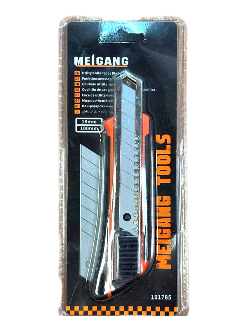 Канцелярський ніж MEIGANG TOOLS PL-W39 — це надійний та зручний інструмент для точних робіт. Оснащений міцним висувним лезом шириною 18 мм, яке ідеально підходить для різання картону, пластику, паперу, плівки, шпалер та інших матеріалів. Металеві напрямні всередині корпусу забезпечують плавний і стабільний рух леза, а надійний фіксатор гарантує безпеку під час роботи.