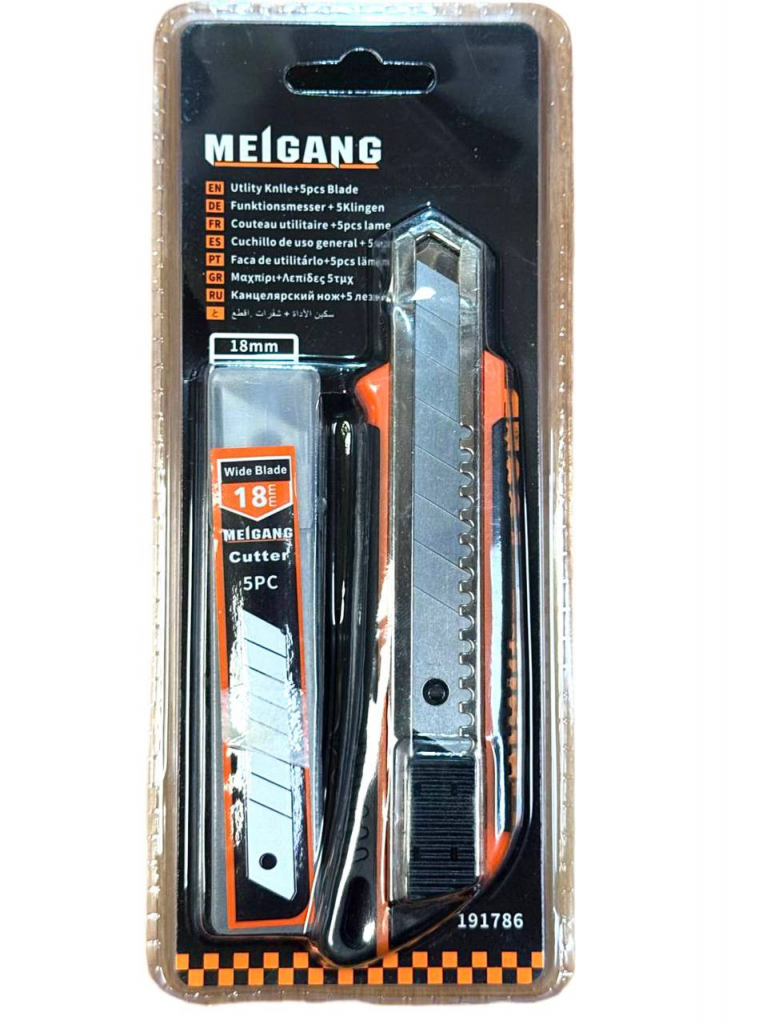Набір «Канцелярський ніж MEIGANG TOOLS PL-W40 » — це практичний комплект для тих, хто цінує надійність та довговічність. Він включає міцний канцелярський ніж з висувним лезом шириною 18 мм та окремий контейнер з п'ятьма запасними лезами. Ніж оснащений металевими напрямними, які забезпечують плавне ковзання і точність різу, а також надійним фіксатором для безпеки. Ергономічний корпус чорно-помаранчевого кольору зручно лежить в руці. Цей набір ідеально підходить для широкого спектра завдань, включаючи різання паперу, картону, шпалер, плівки та інших щільних матеріалів.