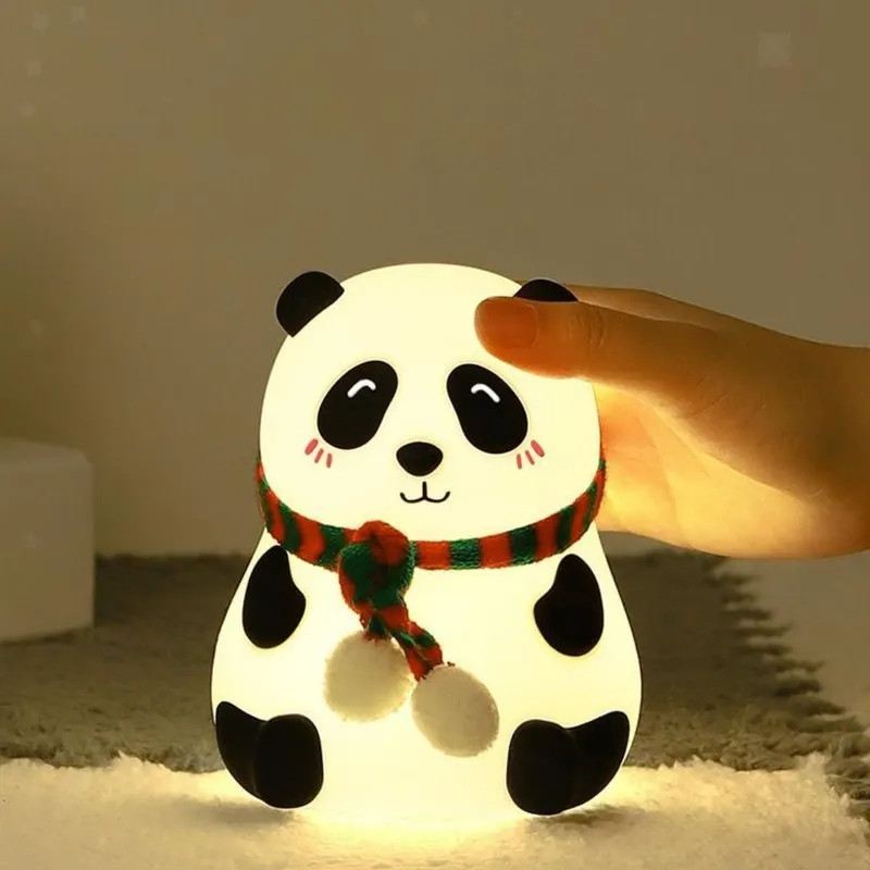 М'який силіконовий нічник у вигляді милої Панди у святковому шарфику стане ідеальним подарунком та незамінним помічником у дитячій кімнаті. Світильник виготовлений із безпечного, приємного на дотик харчового силікону та міцного ABS-пластику. Завдяки м'якому корпусу, дитина може безпечно гратися з нічником, стискати його або брати із собою у ліжко. Панда працює у декількох режимах: м'яке тепле світло для сну та режим плавної зміни кольорів (RGB) для створення казкової атмосфери. Керування дуже просте — достатньо легкого хлопка по корпусу для перемикання режимів. Вбудований акумулятор позбавляє необхідності постійно купувати батарейки, а зарядка через USB робить використання максимально зручним.