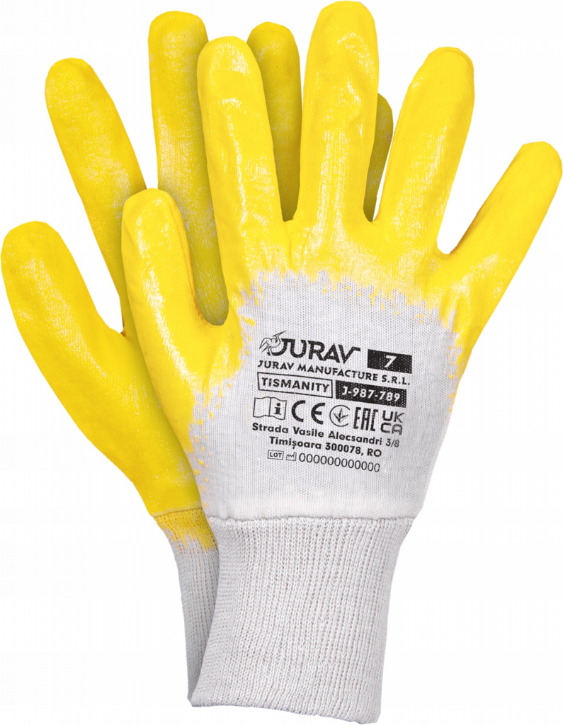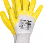 Рукавички виготовлені на основі бавовняного трикотажу. Покриті нітрилом на внутрішній і тильній стороні долоні, що забезпечує стійкіший і надійніший захист долонь і пальців від забруднень і пошкоджень під час проведення побутових, будівельних і садових робіт. Стійкі до стирання та мають довгий термін експлуатації. Повітропроникна тканинна основа створює додатковий комфорт.