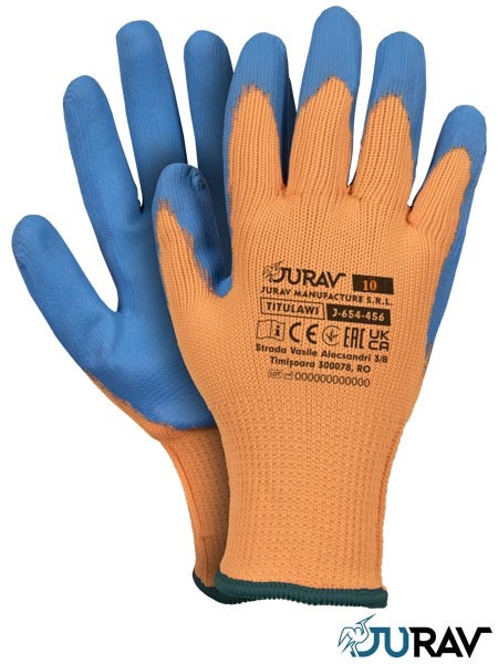 Рукавиці захисні утеплені з яскравого флуоресцентного акрила, долоня і пальці покриті високоякісним латексом, махрові з внутрішньої сторони. Манжети еластичні. Забезпечує добре зчеплення з гладкими поверхнями.