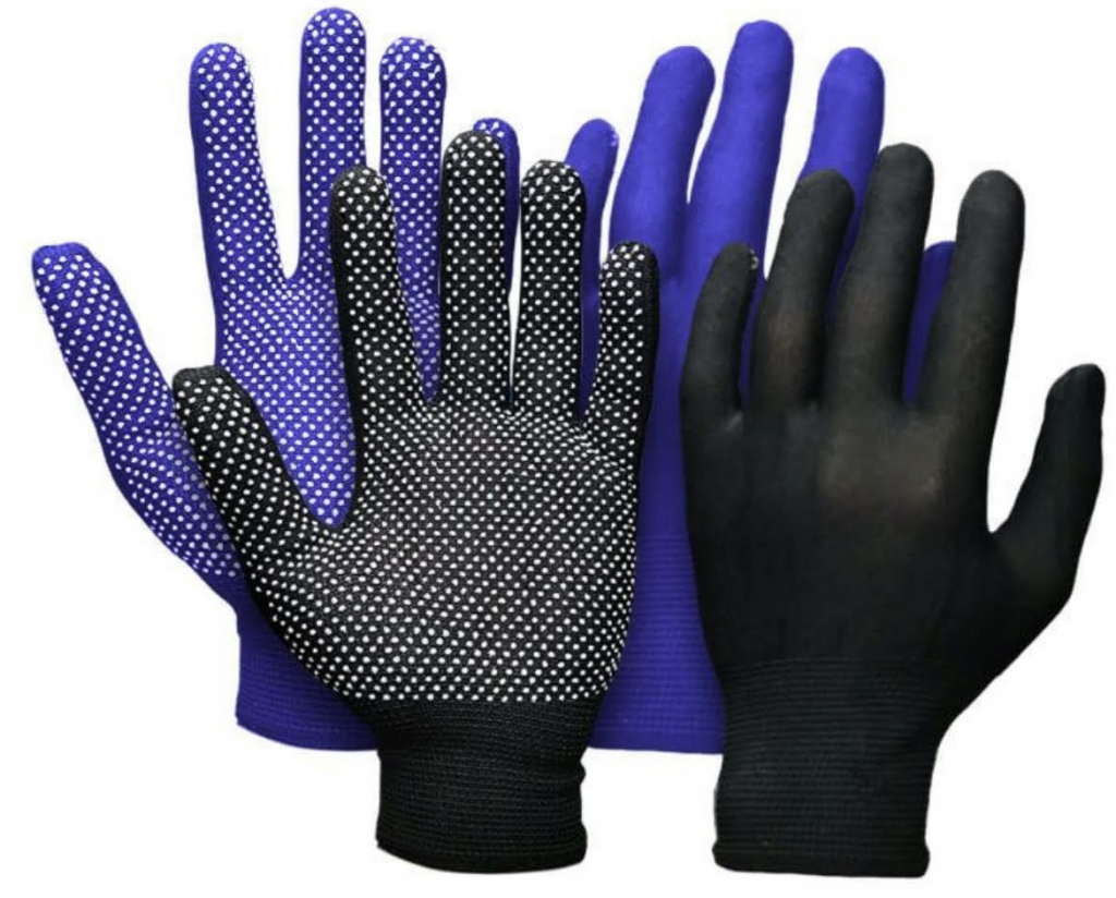 Рукавички в'язані: захищають руки від незначних механічних пошкоджень, забруднення та стирання, а також від некомфортних для робіт температур. Надійність і міцність рукавичок залежить від класу в'язки та кількості ниток. Нанесення на рукавички шару ПВХ забезпечує більшу зносостійкість і міцність. Рукавички з нейлону досить зносостійкі й еластичні, завдяки цьому вони чудово облягають долоню та пристосовуються до розміру та форми будь-якої руки. Такі рукавички прекрасно підійдуть під час виконання точних виробничих операцій, де потрібна гарна чутливість пальців і координація руху рук.
