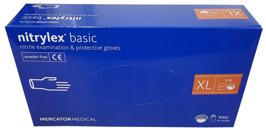 Рукавички нітрилові неопудрені сині NITRYLEX BLUE, 100 шт (50пар), розмір XL