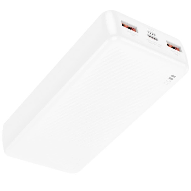 Корпус пристрою виконаний з міцної комбінації ABS-пластику та вогнестійкого полікарбонату, а стильна рельєфна текстура не тільки додає преміального вигляду, але й перешкоджає вислизанню з рук. На лицьовій панелі розташований чотирьохсегментний LED-індикатор, який дозволяє точно контролювати залишок заряду. Компактні розміри роблять його зручним для щоденного використання та подорожей.