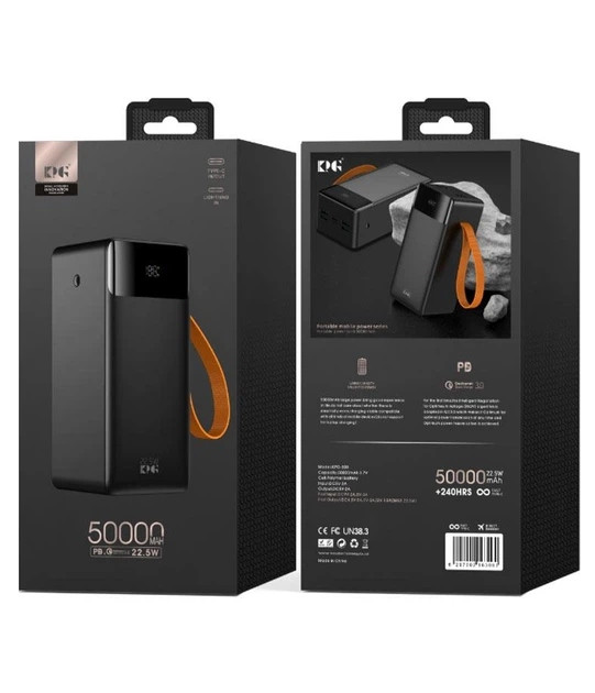 King Power KPG-508 — це надпотужний павербанк з колосальною ємністю 50 000 мАг, створений для тих, кому важливо залишатися на зв'язку за будь-яких умов. Його об'єму вистачить, щоб зарядити середньостатистичний смартфон до 10–12 разів. Пристрій підтримує швидку зарядку 22.5W, протоколи PD та QC 3.0, що робить його ідеальним рішенням для живлення телефонів, планшетів та навіть LED-ламп під час тривалих відключень світла.